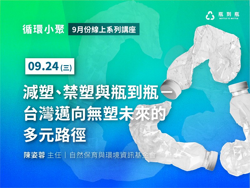 【循環小聚】免費線上講座由本會與三人恆好有限公司共同發起,聚焦食品容器的再生塑膠應用。本系列講座邀請來自產官學界的專家,透過案例分享與交流,帶領參與者深入認識再生塑膠的現況與潛力,探索企業實踐、政策支持與市場推動下的可行路徑。9月份由本會環境議題部陳姿蓉主任擔任講師,作為長期投入減塑倡議與生態棲地保育的環保團體,究竟如何看待漸進減塑、全面禁塑和瓶到瓶之間的關係?減少塑膠的路上,還有什麼多元路徑?邀請你一起從不同視角來看待塑膠減用的產業轉型課題。